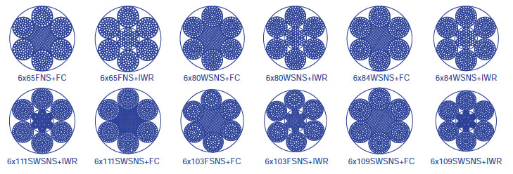 繩結構:6×65FNS+FC 6×65FNS+IWR 6×80WSNS+FC 6×80WSNS+IWR 6×84WSNS+FC 6×84WSNS+IWR 6×111SWNS+FC 6×111SWSNS+IWR 6×103FSNS+FC 6×103FSNS+IWR 6×109SWSNS+FC 6×109SWSNS+IWR